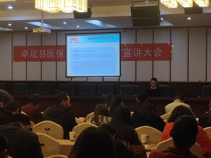 随后、医保局副局长后芳环做了讲话,就开展长护险工作内容与相关要求进行安排部署;人保财险卓尼支公司长期照护保险岗位人员、大病报销保险岗位人员分别就长护保险及大病保险政策进行了解读,对保险条款及保险报销流程通过PPT的形式进行了讲解培训。